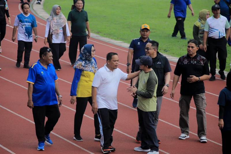 Penjabat (Pj) Wali Kota Tangerang, Dr. Nurdin, yang hadir dan berbaur dengan masyarakat terlihat sangat antusias mengikuti senam sehat yang turut dihadiri oleh para Kepala Perangkat Daerah serta pegawai di Lingkungan Pemkot Tangerang.