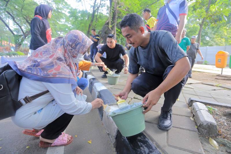 Penjabat (Pj) Wali Kota Tangerang, Dr. Nurdin, didampingi Sekretaris Daerah (Sekda) Kota Tangerang, Herman Suwarman, turut hadir meninjau sekaligus ikut melakukan pengecatan kanstin di kawasan Tugu Adipura Kota Tangerang, Jumat pagi, (23/02).