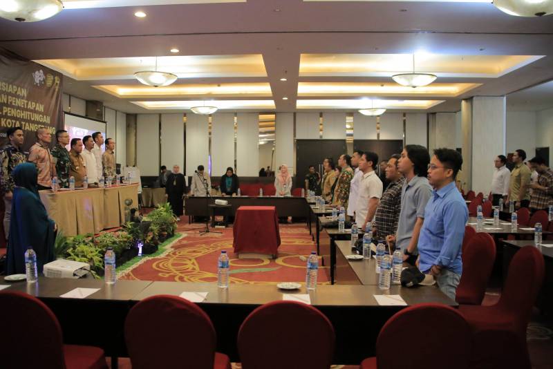 Penjabat (Pj) Wali Kota Tangerang, Dr. Nurdin, menghadiri Rapat Persiapan Rekapitulasi dan Penetapan Rekapitulasi Hasil Penghitungan Perolehan Suara di Kota Tangerang yang diinisiasi oleh Komisi Pemilihan Umum (KPU) Kota Tangerang bertempat di Day's Hotel, Kecamatan Neglasari, Senin, (26/02).