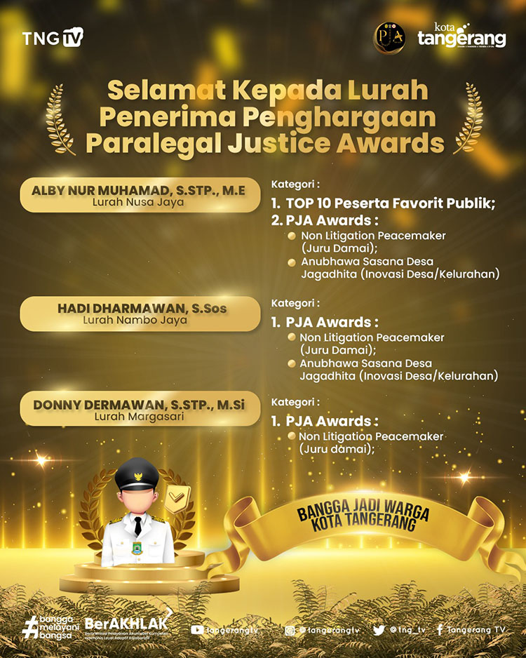 Pada perayaan Hari Ulang Tahun (HUT) ke-31 Kota Tangerang, Badan Pengelola Keuangan Daerah (BPKD) Kota Tangerang memberikan penghargaan pada wajib pajak terpatuh di tujuh sektor pajak. Penghargaan diberikan langsung Penjabat (Pj) Wali Kota Tangerang Nurdin, pada Resepsi Hari Jadi Kota Tangerang, di Plaza Puspem Kota Tangerang, Rabu (28/2/2024).