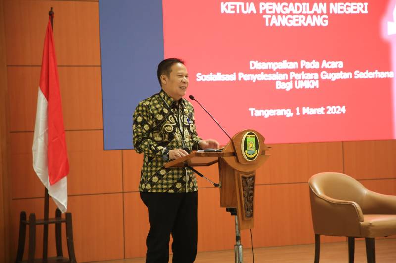 Dalam upaya memberikan pengetahuan tentang penyelesaian permasalahan hukum, Pemerintah Kota (Pemkot) Tangerang melalui Dinas Perindustrian, Perdagangan, Koperasi dan UKM (Disperindagkop UKM) menggelar sosialisasi Penyelesaian Perkara Gugatan Sederhana bagi UMKM. Sosialisasi dilaksanakan di Ruang Al-Amanah, Pusat Pemerintahan Kota Tangerang, Jumat (1/3/2024).