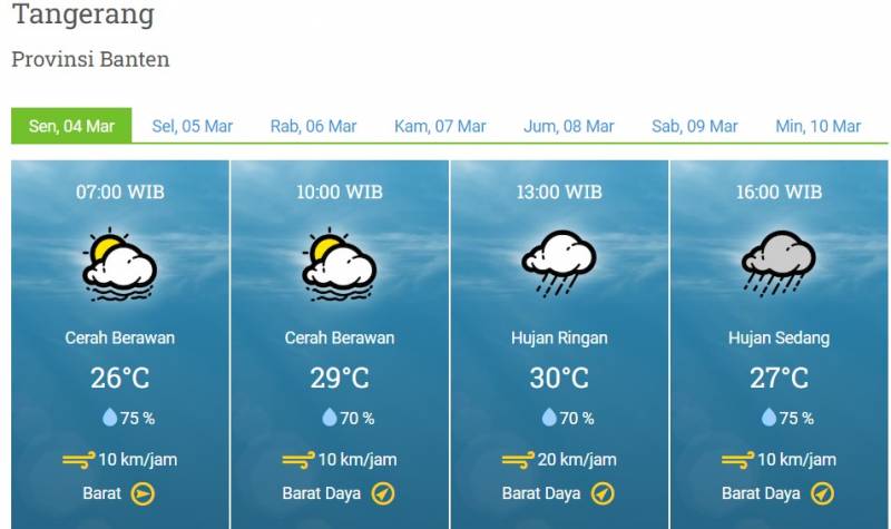 Berikut Prakiraan Cuaca Kota Tangerang Sepekan ke Depan