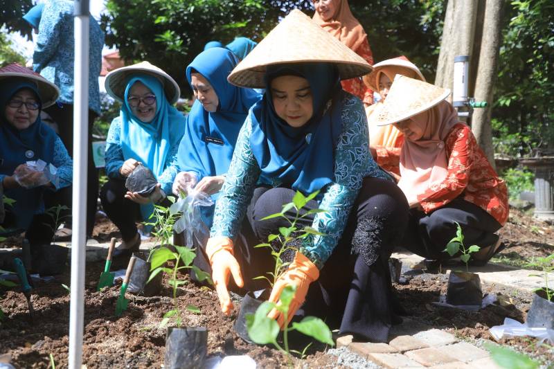 Tim Penggerak Pemberdayaan Kesejahteraan Keluarga (PKK) Kota Tangerang melakukan Gerakan Tanam Cabai Serentak dalam rangka Hari Kesatuan Gerak (HKG) PKK ke-52 tingkat Nasional. Kegiatan berlangsung di Kelompok Wanita Tani (KWT) Mina Lestari, Jalan Mina Raya II RW 012, Kelurahan Panunggangan Barat, Kecamatan Cibodas, Kota Tangerang, Senin (4/3/2024).