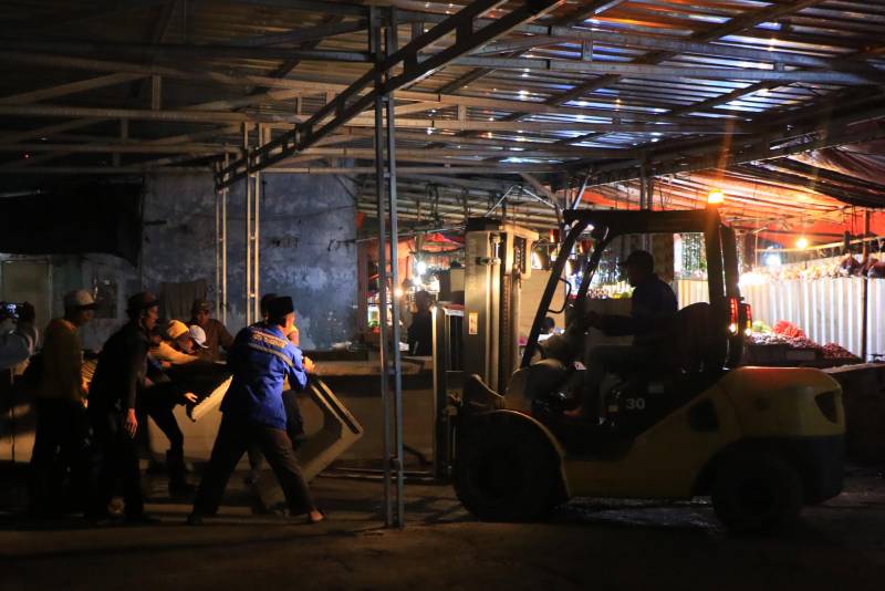 "Alhamdulillah tadi dapat tambahan tenaga untuk mengangkut lemari jadi tinggal sisa yang ringan-ringan saja untuk dipindahkan besok semoga siang atau sore sudah bisa terangkut semua biar bisa langsung jualan lagi." tukas Agus.