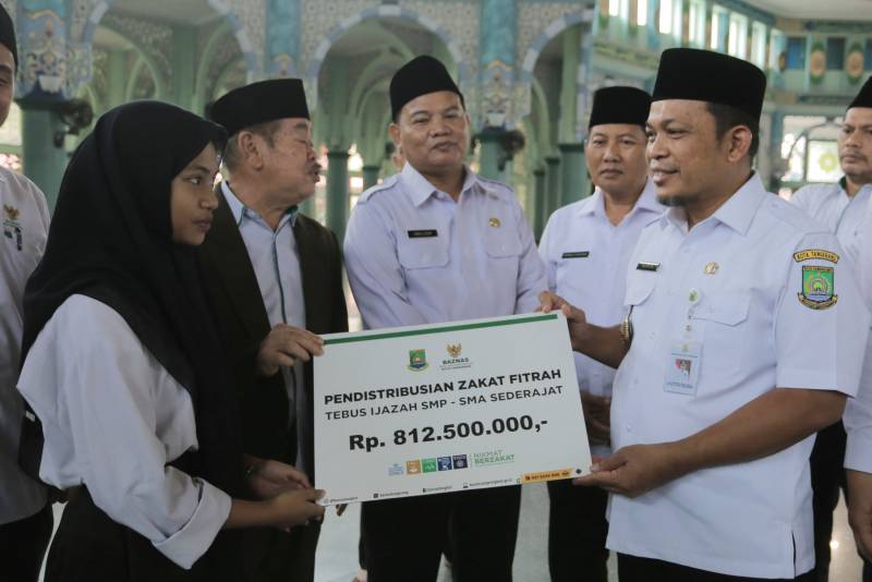 Pada kesempatan tersebut, juga Pj Wali Kota bersama Sekretaris Daerah Kota Tangerang menyerahkan secara simbolis zakat yang bersumber dari Pegawai, Guru dan Pelajar se-kota Tangerang sebesar Rp 3.4 Miliar kepada siswa SMP/SMA yang kurang mampu, Guru ngaji, Marbot Yatim, Dhuafa dan juga kemudian Micropreneur Mandiri.