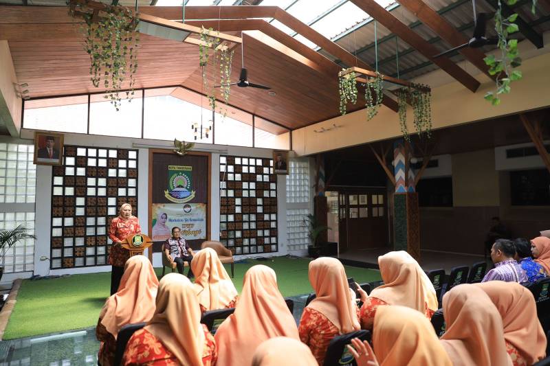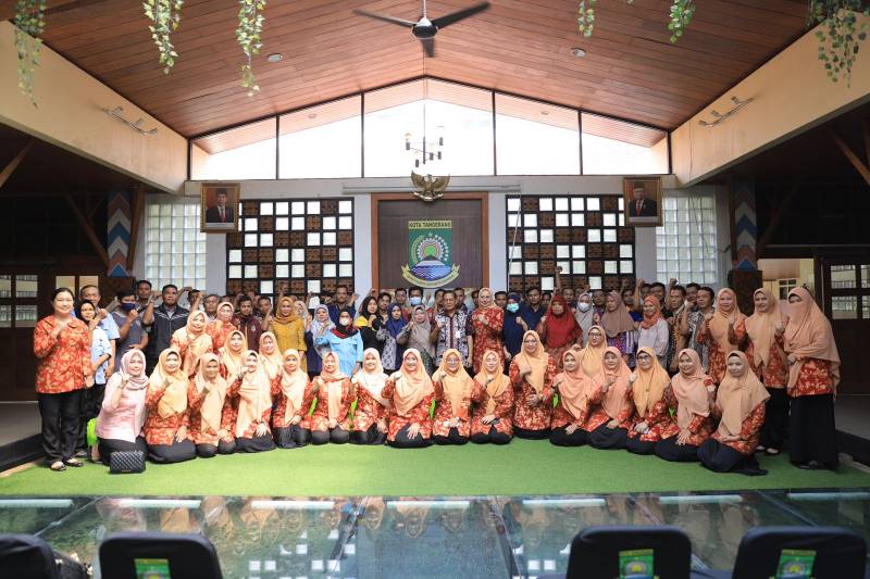 Dharma Wanita Persatuan (DWP) Kota Tangerang membagikan paket sembako kepada petugas kebersihan kantor atau office boy (OB) di lingkup Pemerintah Kota Tangerang, Kamis 4 April 2024. Acara yang dilakukan di Patio Pusat Pemerintahan Kota Tangerang ini sebagai upaya peduli terhadap sesama khususnya di bulan Ramadan.
