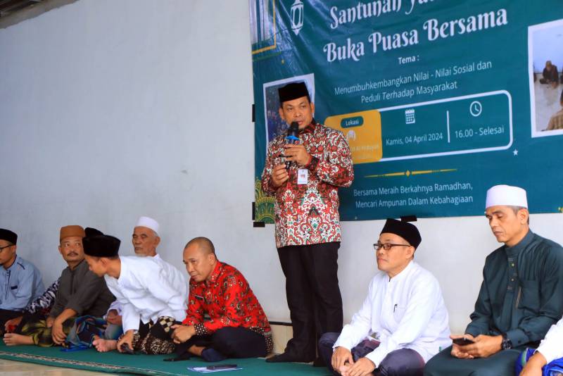 Penjabat (Pj) Wali Kota Tangerang, Dr. Nurdin, menghadiri kegiatan santunan dan buka puasa bersama yang diselenggarakan oleh DKM Masjid Al Hidayah dan Karang Taruna RW. 06, Kelurahan Buaran, Kota Tangerang, Kamis (04/04).