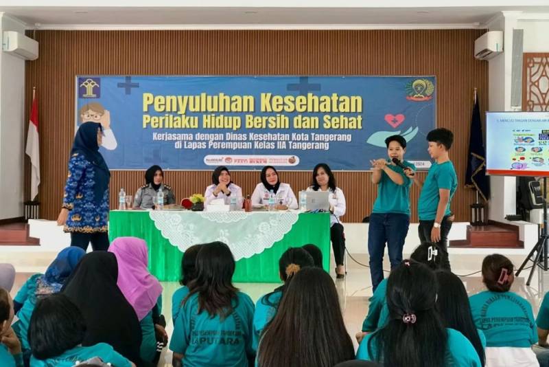 Dinas Kesehatan (Dinkes) Kota Tangerang menggelar penyuluhan kesehatan terkait Perilaku Hidup Bersih dan Sehat (PHBS), dengan menyasar warga binaan dan pegawai Lapas Perempuan Kelas II A Tangerang. Diketahui, kegiatan ini dalam rangka memeriahkan Hari Bhakti Pemasyarakatan ke-60.