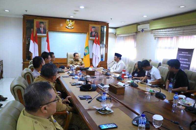 Penjabat (Pj) Wali Kota Tangerang, Dr. Nurdin, menerima kunjungan dari Koalisi Aktivis Lingkungan Hidup Tangerang di Ruang Rapat Wali Kota Tangerang, Senin, 22 April 2024, yang juga bertepatan dengan peringatan Hari Bumi Sedunia.