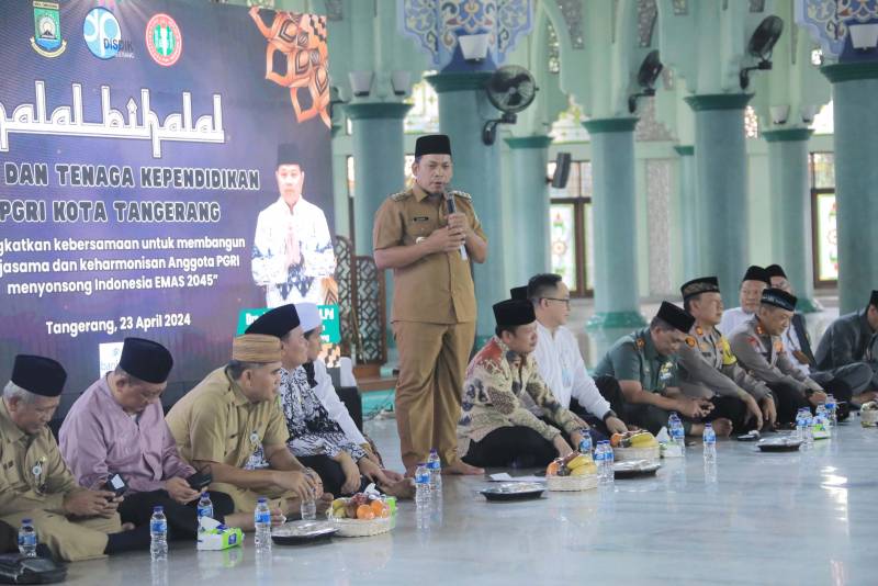 Penjabat (Pj) Wali Kota Tangerang, Dr. Nurdin, menghadiri kegiatan Halal Bihalal Guru dan Tenaga kependidikan PGRI Kota Tangerang yang diselenggarakan di Masjid Raya Al-A'zhom, Selasa, (23/04).