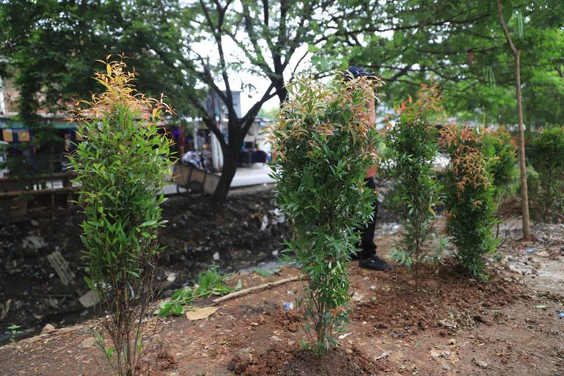 "Setelah proses penertiban selesai, kami langsung menerjunkan petugas pertamanan untuk mulai mengalihfungsikan lahan bekas lapak pedagang liar untuk dilakukan penghijauan dengan ditanami ratusan pohon," ujar Rizal, Rabu (24/4/24).