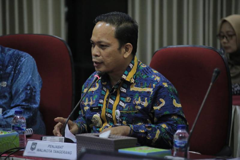 Penjabat (PJ) Wali Kota Tangerang, Dr. Nurdin, memaparkan capaian kinerja pasca tiga bulan menjabat sebagai Kepala Daerah dihadapan Tim Evaluator Inspektorat Kementerian Dalam Negeri (Kemendagri), Kamis (25/04).