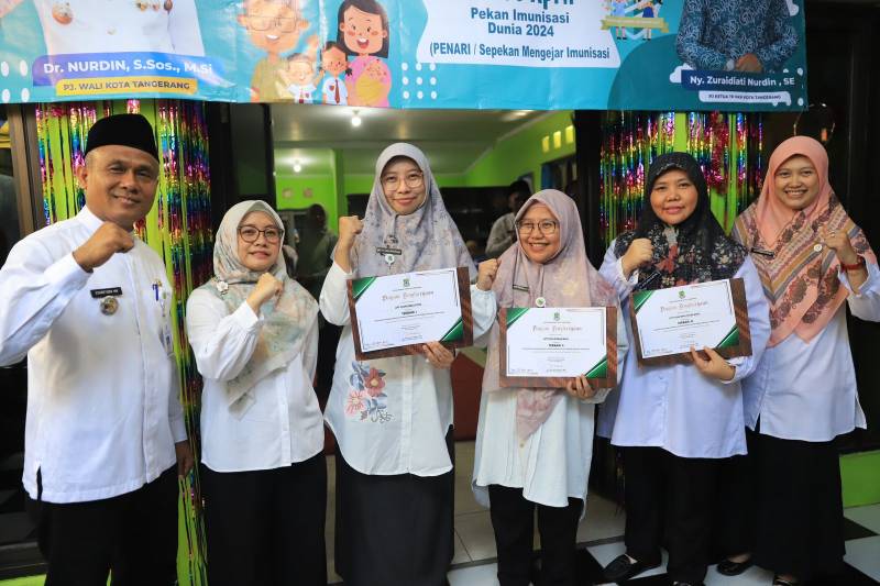 Dinas Kesehatan (Dinkes) Kota Tangerang memberikan penghargaan kepada Puskesmas di Kota Tangerang atas capaian kinerja dan program yang telah dikerjakan selama 2023. Penghargaan tersebut diberikan bersamaan pada rangkaian acara Pekan Imunisasi Dunia (PID) yaitu peresmian program Sepekan Mengejar Imunisasi (Penari), di Posyandu Cemara 7, Kelurahan Panunggangan Utara, Kecamatan Pinang, Kota Tangerang, Jumat (26/4/2024).
