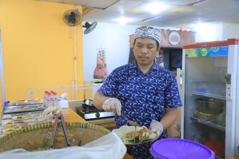 "Satu porsi ekonomis itu sudah ada bayam, kol, potongan tempe mendoan, sambal kacang, juga kerupuk. Lalu, untuk porsi paket lengkap ditambahkan telur. Jadi, sangat terjangkau sekali harganya," ujar Nandar.