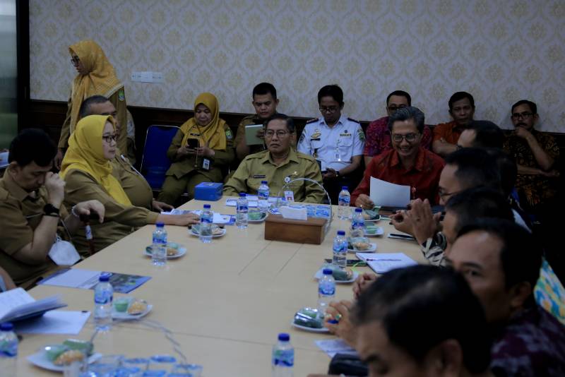 Sekretaris Daerah (Sekda) Kota Tangerang, Herman Suwarman, menerima kunjungan Tim Pengendalian Inflasi Daerah (TPID) Kabupaten Badung, di Ruang Rapat Sekda, Pusat Pemerintahan Kota Tangerang, Selasa (30/4). Kunjungan tersebut bertujuan untuk mempelajari strategi dan program pengendalian inflasi yang telah diterapkan di Kota Tangerang.