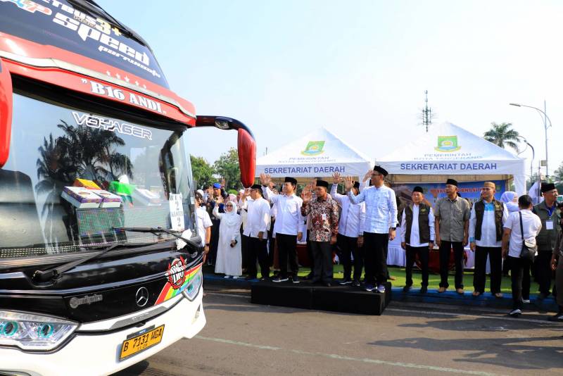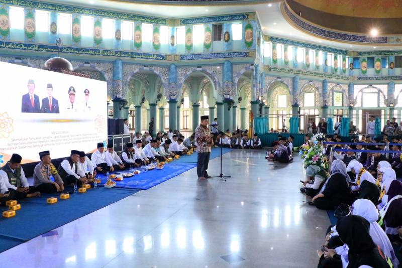 Penjabat Wali Kota Tangerang Doktor (Dr) Nurdin, bersama dengan Sekretaris Daerah Kota Tangerang, Herman Suwarman, melepas keberangkatan 431 jemaah Calon Haji (Calhaj) Kloter 02 JKG/Banten Kota Tangerang yang berlangsung di Masjid Raya Al-A'zhom, Kawasan Pusat Pemerintahan Kota Tangerang, Sabtu (11/05).