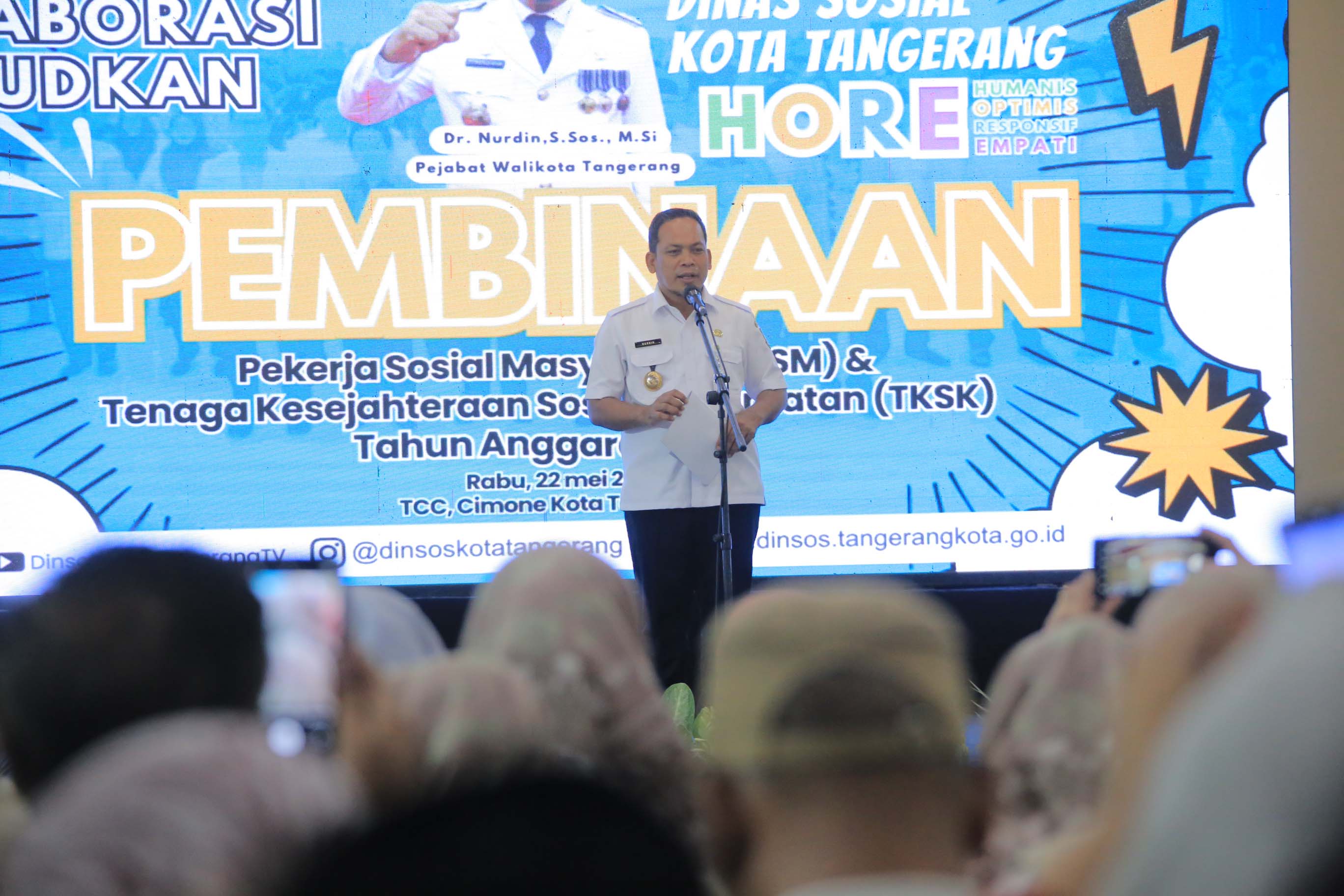 Dalam rangka meningkatkan kapasitas para Pekerja Sosial Masyarakat (PSM) dan Tenaga Kesejahteraan Sosial Kecamatan guna mengoptimalkan pelayanan sosial bagi masyarakat, Pemerintah Kota (Pemkot) Tangerang melalui Dinas Sosial menggelar kegiatan Pembinaan PSM dan Tenaga Kesejahteraan Sosial Kecamatan (TKSK) Tahun Anggaran 2024, yang bertempat di Tangerang Convention Center (TCC), Kelurahan Cimone, Kecamatan Karawaci, Rabu, (22/05).