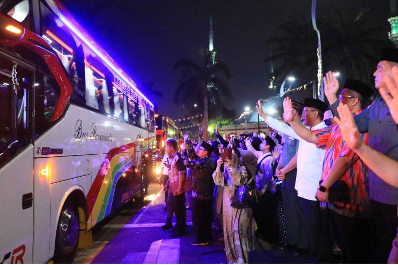 Sekretaris Daerah (Sekda) Kota Tangerang, Herman Suwarman, melepas keberangkatan Rombongan Jemaah Haji Reguler Kota Tangerang Kloter 41-JKG/Kota Tangerang, Provinsi Banten Tahun 1445 H/2024 M, sebanyak 393 jemaah, di Masjid Raya Al-A'zhom, Kawasan Pusat Pemerintahan Kota Tangerang, pada Rabu, (29/5) malam.