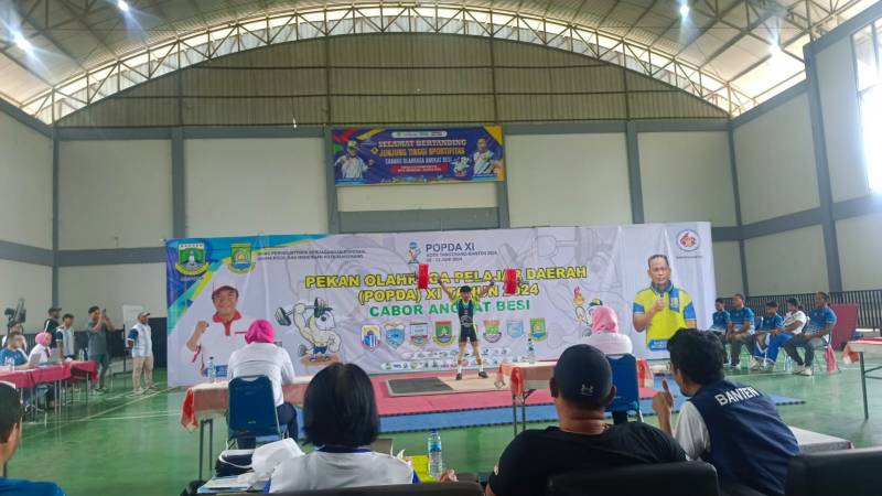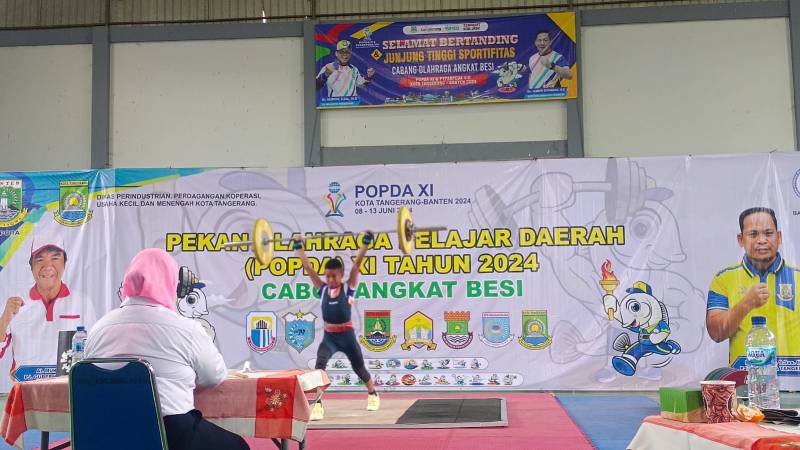Pertandingan cabang olahraga (Cabor) angkat besi Pekan Olahraga Pelajar Daerah (POPDA) XI Banten baru dimulai hari ini di GOR Neglasari, Kota Tangerang, Minggu, 9 Juni 2024.