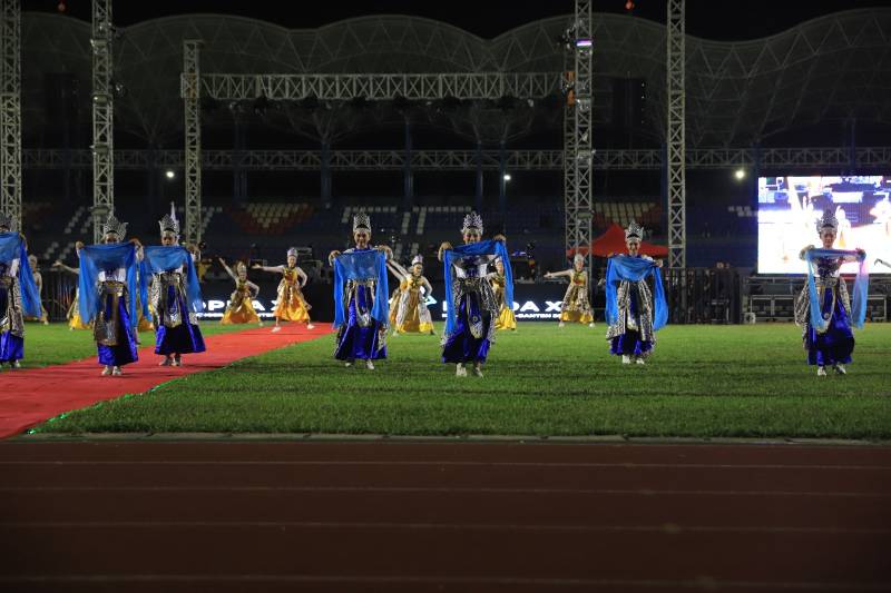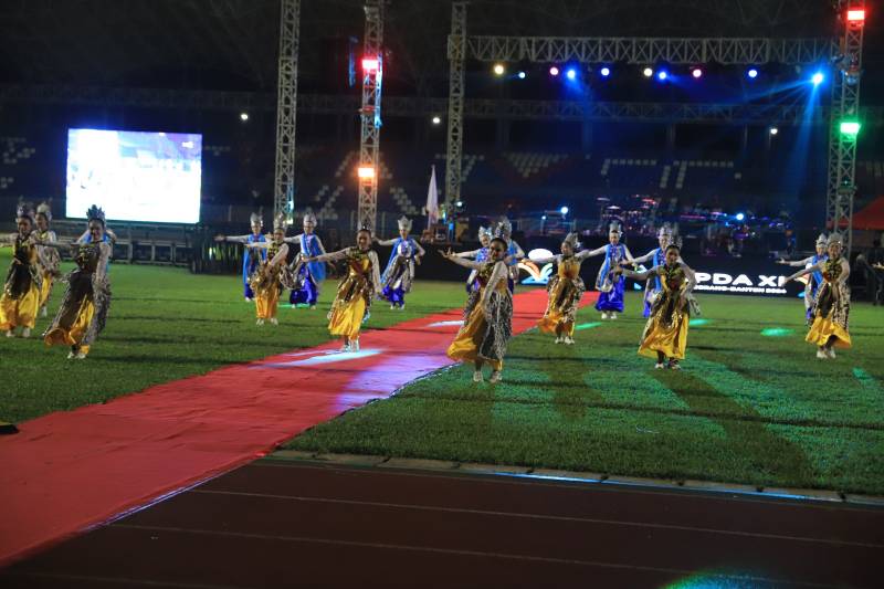 Kemegahan acara terpancar sejak awal acara berlangsung. Terlihat dari ratusan penari yang memenuhi hampir setengah lapangan, dan penampilan marching band yang menambah rasa megah.