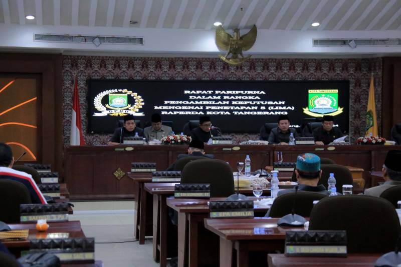 Sebanyak lima Rancangan Peraturan Daerah (Raperda) yang diajukan oleh Pemerintah Kota (Pemkot) Tangerang, resmi ditetapkan menjadi Peraturan Daerah (Perda) oleh DPRD Kota Tangerang.