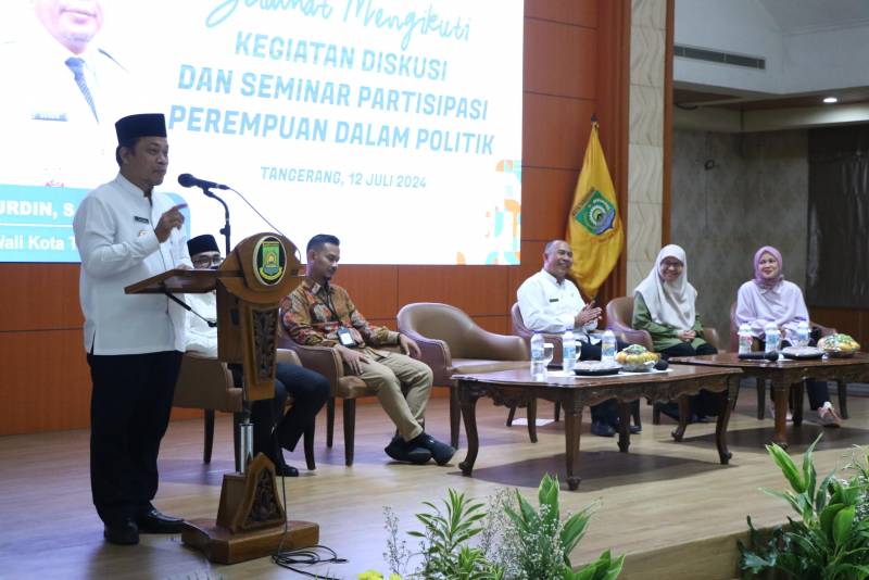 Penjabat (Pj) Wali Kota Tangerang, Dr. Nurdin, memberikan dukungan penuh terhadap upaya peningkatan keterlibatan perempuan dalam dunia politik. Hal tersebut disampaikannya saat menghadiri Diskusi dan Seminar Partisipasi Perempuan dalam Politik yang diselenggarakan oleh Badan Kesatuan Bangsa dan Politik (Kesbangpol) Kota Tangerang, yang berlangsung di ruang Al-Amanah, Puspem, Jumat (12/7).