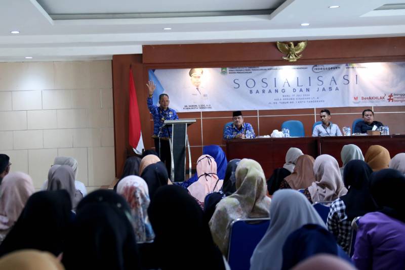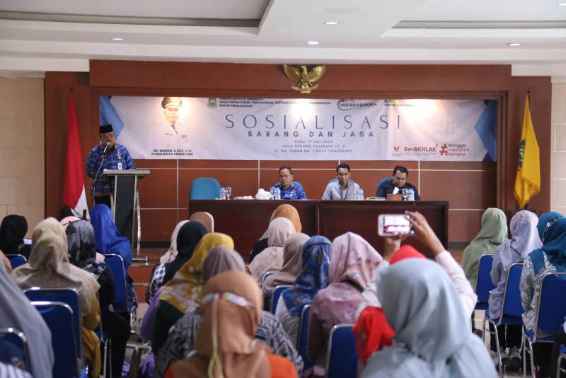 Penjabat (PJ) Wali Kota Tangerang, Dr. Nurdin, membuka kegiatan Sosialisasi Barang dan Jasa yang ditujukan bagi para pelaku Usaha Mikro, Kecil, dan Menengah (UMKM) serta pelaku usaha Warung Kita yang diselenggarakan oleh Dinas Perindustrian, Perdagangan, Koperasi dan UKM (Disperindagkop UKM) di Gedung Cisadane, Rabu (17/7).