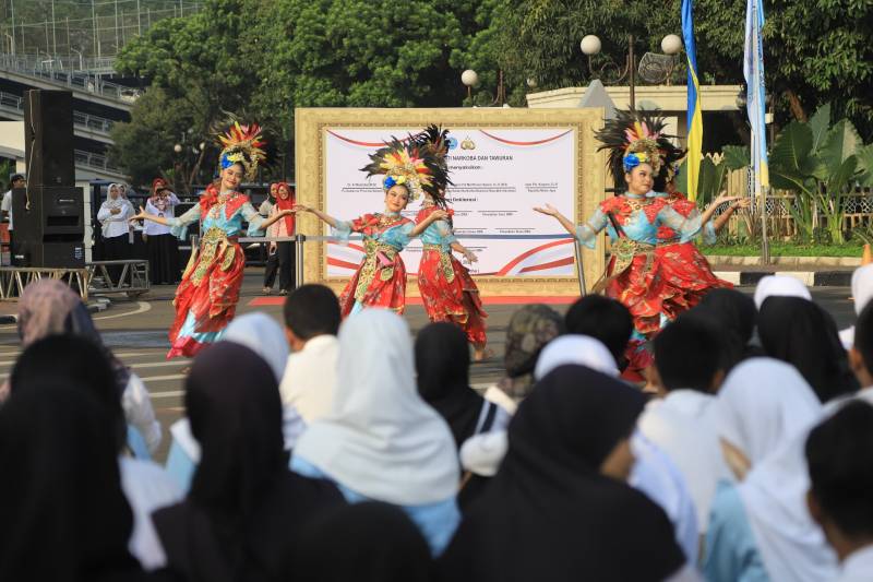 "Sebanyak 5.000 pelajar ini semoga dapat menjadi teman sebaya yang positif sebagai pertahanan di dalam lingkungan masyarakat khususnya pelajar. Sehingga, secara mandiri dapat terus menggelorakan dan melakukan perlawanan pada penyalahgunaan narkoba dan tawuran," tuturnya.