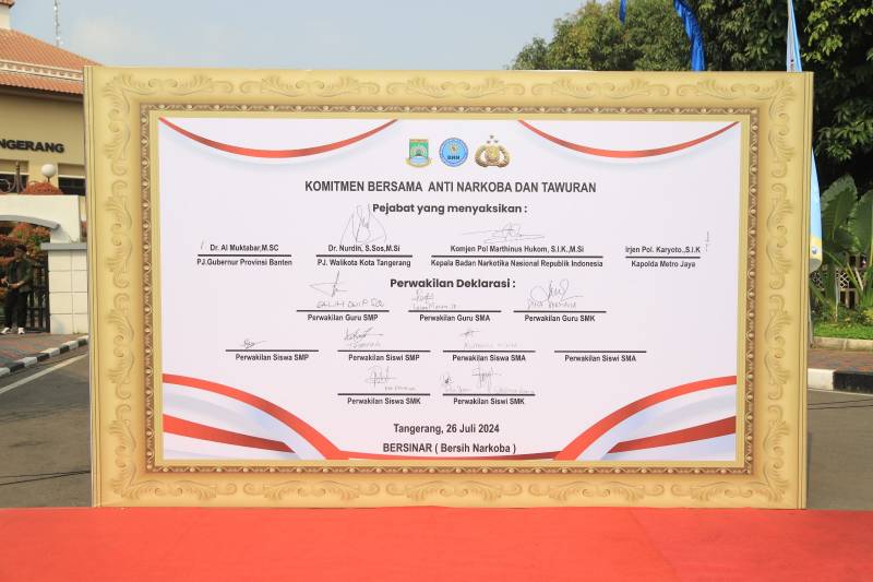 Pemerintah Kota (Pemkot) Tangerang melalui Badan Kesatuan Bangsa dan Politik (Kesbangpol) bersama Badan Narkotika Nasional Republik Indonesia (BNN RI) dan Polres Metro Tangerang Kota menggelar Deklarasi Pelajar Kota Tangerang Anti Narkoba dan Tawuran. Acara dilaksanakan di Taman Elektrik, Jumat (26/7/24).