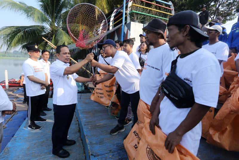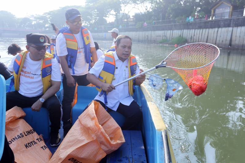 Penjabat (Pj) Wali Kota Tangerang, Dr. Nurdin, memanfaatkan momentum peringatan Hari Sungai Nasional yang diperingati setiap tanggal 27 Juli dengan melaksanakan kegiatan bebersih Sungai Cisadane.