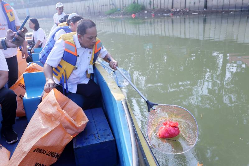 Dalam momen tersebut, Pj Wali Kota, bersama unsur masyarakat dan personil gabungan dari Pemerintah Kota (Pemkot) Tangerang yang terdiri dari BPBD, DLH serta PUPR menyusur dan membersihkan sampah yang ada di sungai tersebut.
