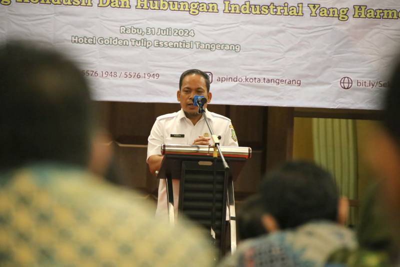 Penjabat (Pj) Wali Kota Tangerang, Dr. Nurdin, menghadiri sekaligus membuka acara Musyawarah Kota (Muskot) VII Dewan Pimpinan Kota (DPK) Asosiasi Pengusaha Indonesia (Apindo) Kota Tangerang, yang digelar di Hotel Golden Tulip Essential Tangerang, Rabu, (31/07).