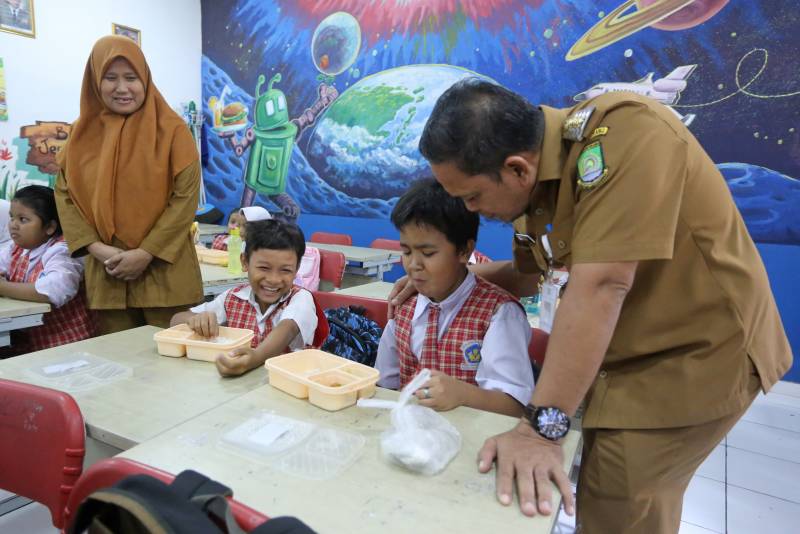 Memasuki hari kedua Uji Coba Makan Bergizi Gratis (MBG) yang merupakan Program Unggulan Presiden Terpilih dan Wakil Presiden Terpilih Periode 2024-2029 di Kota Tangerang, Penjabat (Pj) Wali Kota Tangerang, Dr. Nurdin, meninjau langsung pelaksanaan uji coba MBG di SDN Pasar Baru 1 dan SMPN 29 Kota Tangerang, Selasa, (06/08).