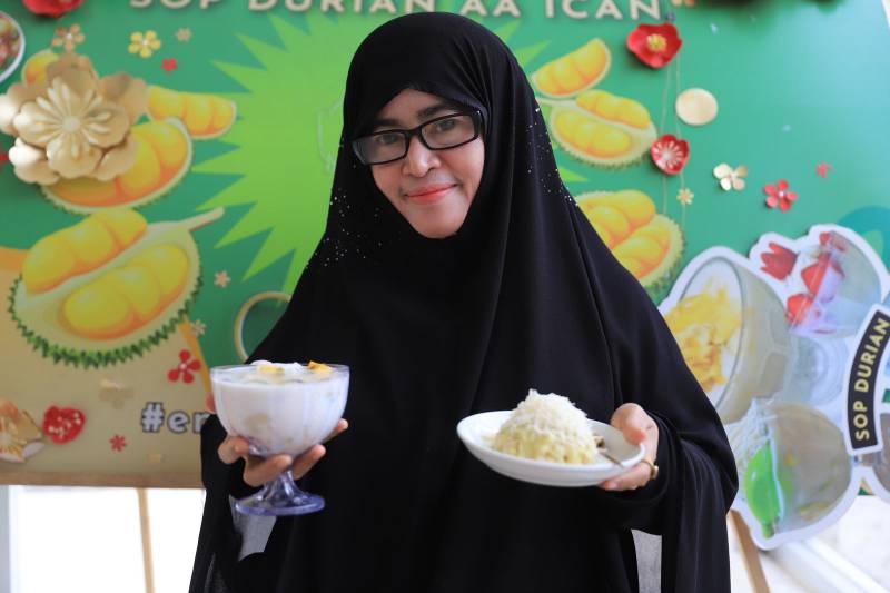 "Alhamdulillah, kami hadirkan menu durian karena melihat durian disukai oleh semua kalangan, kami melihat di sekitar sini susah sekali mencari sop durian yang enak dan dengan buah premium. Maka dari itu kami hadir," ujar Yulinda.
