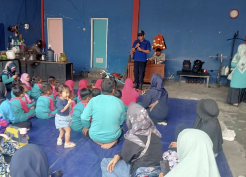 UPT Pemadam Kebakaran dan Penyelamatan Korban Ciledug Badan Penanggulangan Bencana Daerah (BPBD) Kota Tangerang menerima kunjungan edukatif siswa-siswi KB-TK Islam Bunayy, Kamis (3/10/24). Kunjungan edukatif ini merupakan bagian dari program BPBD Kota Tangerang dalam mengedukasi penanganan kebakaran maupun gempa.