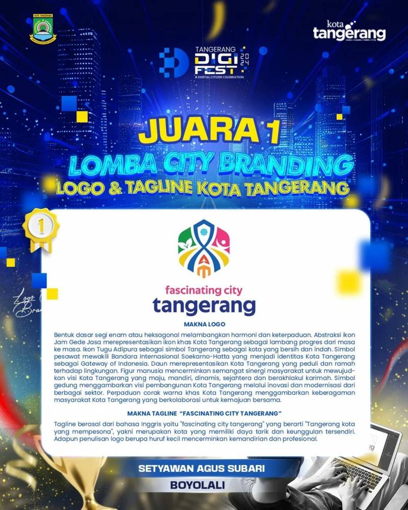 Melewati proses penilaian yang panjang, Lomba City Branding Logo dan Tagline Kota Tangerang akhirnya selesai. Pemerintah Kota (Pemkot) Tangerang melalui Dinas Komunikasi dan Informatika (Diskominfo) pun mengumumkan tiga pemenang dari 109 peserta.