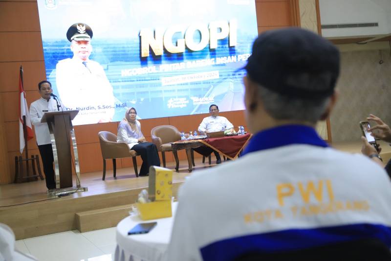 Membangun komunikasi serta ruang kolaborasi dengan insan pers, Pemerintah Kota (Pemkot) Tangerang melalui Dinas Komunikasi dan Informatika (Diskominfo) kembali menggelar Ngobrol Pintar Bareng Insan Pers atau Ngopi, yang digelar di Ruang Al Amanah, Lantai 5, Puspem Kota Tangerang, Jumat (18/10/24).