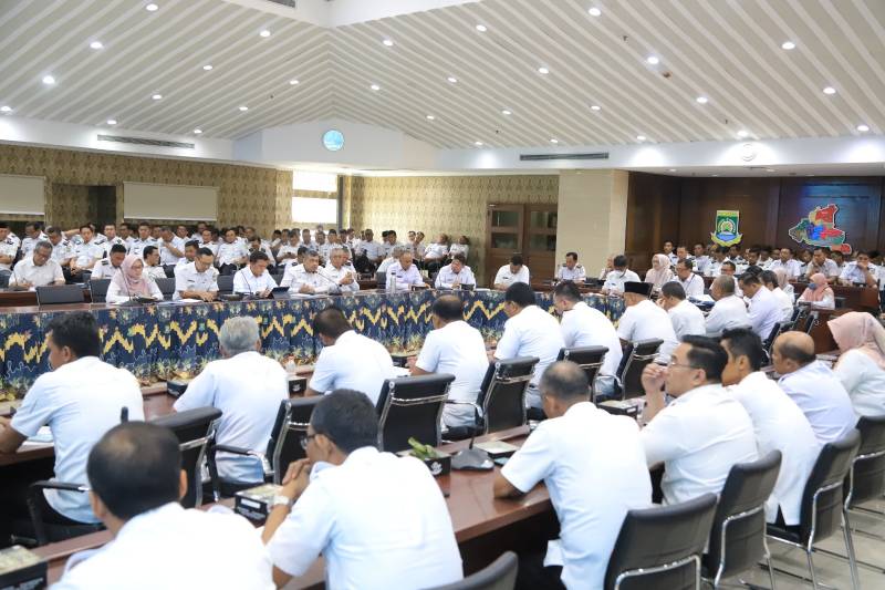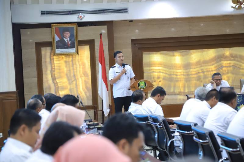 Pemerintah Kota (Pemkot) Tangerang menggelar Rapat Evaluasi Kewilayahan yang dihadiri seluruh kepala OPD, camat, lurah, kepala puskesmas dan dipimpin langsung oleh Penjabat (Pj) Wali Kota Tangerang Dr. Nurdin, di Ruang Akhlakul Karimah, Pusat Pemerintahan Kota Tangerang, Rabu (23/10/24).