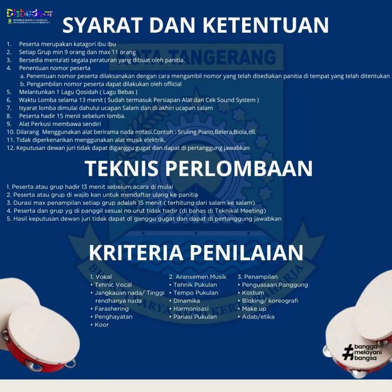 Adapun beberapa persyaratan dalam lomba qasidah di Festival Budaya Nusantara 2024 Kota Tangerang, di antaranya: