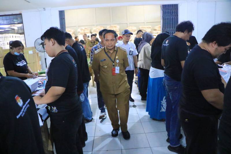 Penjabat (PJ) Wali Kota Tangerang, Dr. Nurdin, Senin (04/11), melakukan Peninjauan kesiapan logistik Pemilihan Umum (Pemilu) bersama Komisi Pemilihan Umum (KPU) dan Badan Pengawas Pemilu (Bawaslu), di Gudang Penyimpanan Surat Suara yang berada di Kawasan Cimone Kota Tangerang.