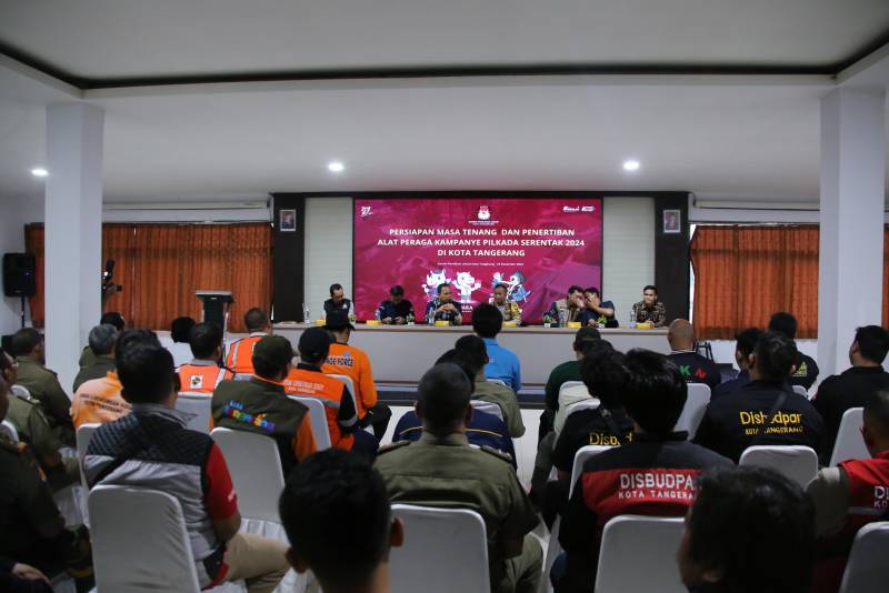 Penjabat (Pj) Wali Kota Tangerang, Dr. Nurdin, menegaskan komitmen Pemerintah Kota (Pemkot) Tangerang dalam mendukung pelaksanaan Pemilihan Kepala Daerah (Pilkada) serentak pada 27 November yang damai dan tertib. Hal ini disampaikan saat Kegiatan Persiapan Masa Tenang dan Penertiban Alat Peraga Kampanye (APK) Pilkada serentak 2024 Kota Tangerang, di Kantor KPU Kota Tangerang, Sabtu (23/11).