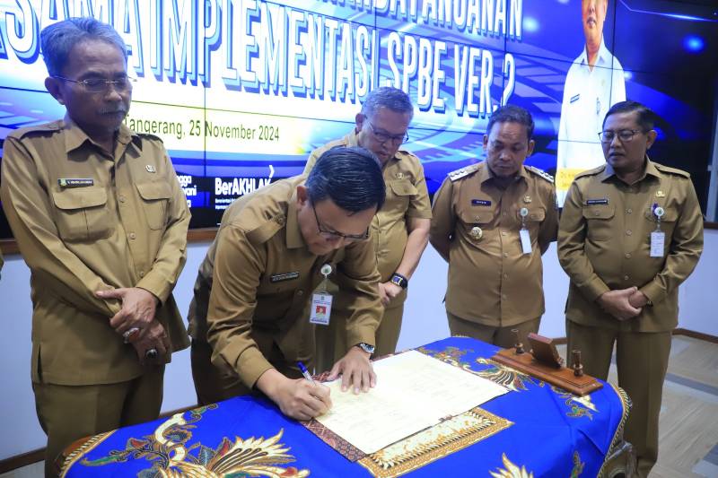 Pemerintah Kota (Pemkot) Tangerang melalui Dinas Komunikasi dan Informatika (Diskominfo) Kota Tangerang melakukan peluncuran Sistem Pemerintahan Berbasis Elektronik (SPBE) Versi 2, yang dilaunching langsung oleh Penjabat (Pj) Wali Kota Tangerang Dr. Nurdin di Ruang Tangerang Live Room, Puspem Kota Tangerang, Senin (25/11/24).