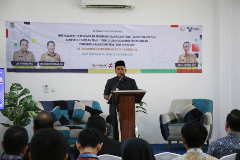 Penjabat (Pj) Wali Kota Tangerang Doktor (Dr) Nurdin, membuka secara langsung kegiatan Musyawarah Perencanaan Pengembangan Kompetensi (Musrenbangkom), yang diinisiasi oleh Badan Kepegawaian dan Pengembangan Sumber Daya Manusia (BKPSDM) Kota Tangerang, bertempat di Grha Bhakti Karya, Kota Tangerang, Kamis (28/11).