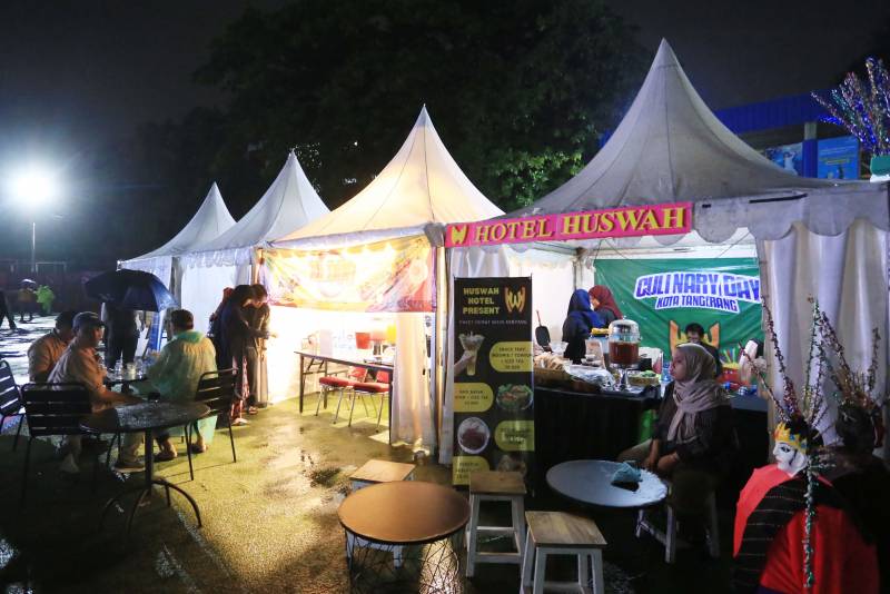Meski diguyur hujan, antusias warga Kota Tangerang untuk menghadiri acara Culinary Day 2024 begitu tinggi untuk meramaikan lokasi acara. Acara yang berlangsung di Alun-Alun Ahmad Yani ini, tidak hanya menyajikan hiburan dari band lokal dan nasional seperti Vieratale Band, tetapi juga menghadirkan berbagai kuliner khas, mulai dari UMKM hingga sajian dari hotel berbintang yang tergabung dalam Perhimpunan Hotel dan Restoran Indonesia, Kota Tangerang.