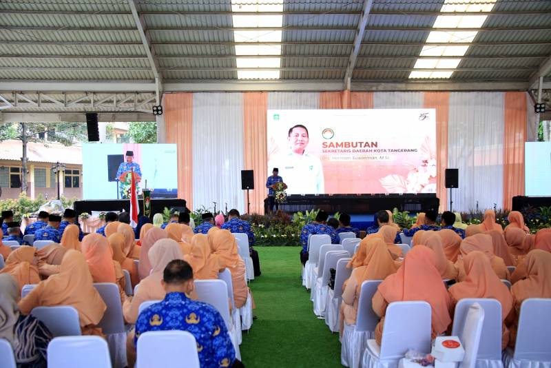 Sekretaris Daerah Kota Tangerang, Herman Suwarman, menghadiri acara peringatan Hari Ulang Tahun (HUT) ke-25 Dharma Wanita Persatuan (DWP) tingkat Kota Tangerang. Acara yang diikuti oleh istri Aparatur Sipil Negara (ASN) Kota Tangerang ini, berlangsung meriah di Selasar Gedung Pusat Pemerintah Kota Tangerang pada Selasa (17/12). Berbagai rangkaian kegiatan seperti lomba menyanyi dan lomba dance tingkat perangkat daerah turut memeriahkan suasana perayaan.