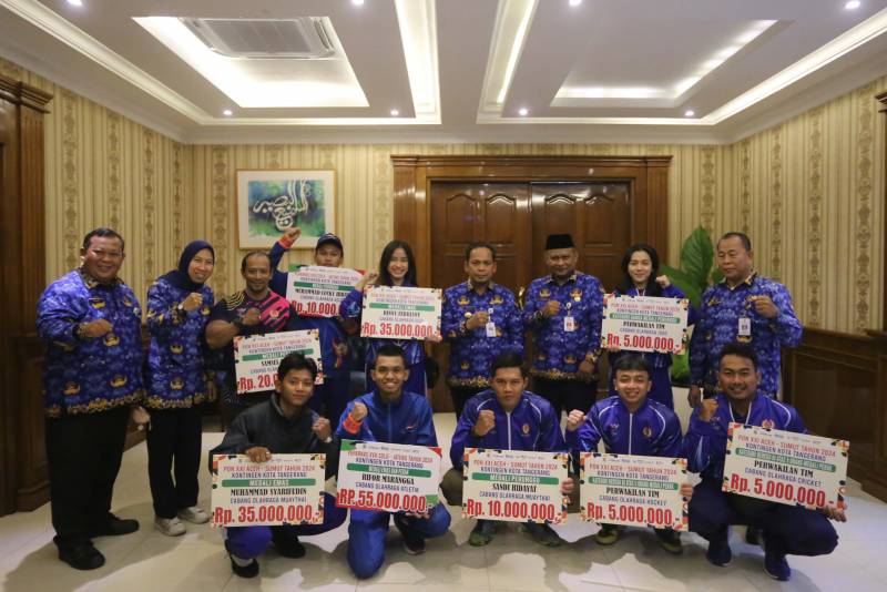 Pemerintah Kota (Pemkot) Tangerang, memberikan apresiasi berupa bonus kepada 26 atlet yang berhasil mengukir prestasi di Pekan Olahraga Nasional 2024, di Aceh-Sumatera Utara dan 2 atlet peraih medali di Pekan Paralimpiade Nasional (Peparnas) 2024 di Solo.