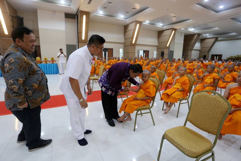 Penjabat (Pj) Wali Kota Tangerang, Dr. Nurdin, menghadiri kegiatan Pabbajja Samanera Sementara 2024 yang diselenggarakan oleh Sekolah Perguruan Buddhi Tangerang bersama Majelis Agama Buddha Mahanikaya Indonesia (MBMI). Acara ini berlangsung di Auditorium Vipassi, Universitas Buddhi Dharma, Karawaci, Kota Tangerang, pada Minggu (22/12).