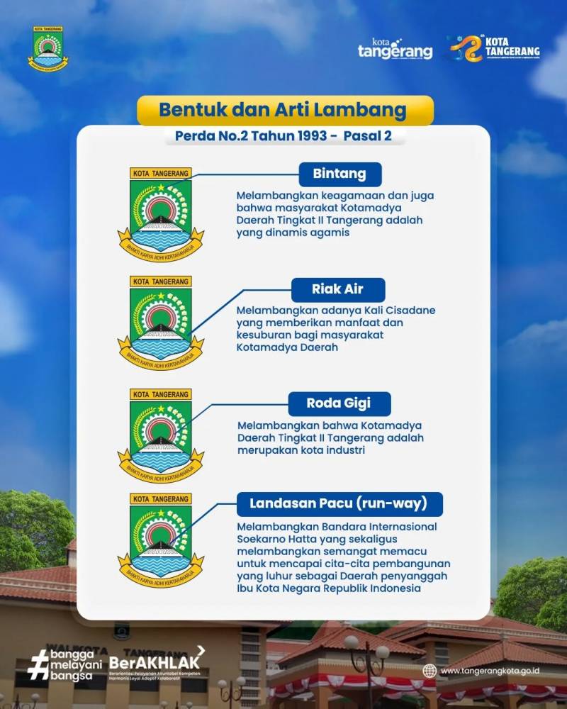 Berdasarkan peraturan daerah Kota Madya daerah tingkat II Tangerang Perda Nomor 2 Tahun 1993 Tentang Lambang Daerah Kota Madya Daerah Tingkat II Tangerang Pasal 2 yaitu: