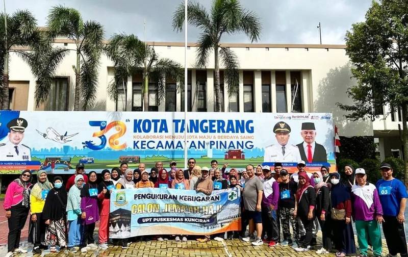 Dinas Kesehatan (Dinkes) Kota Tangerang tengah menyiapkan keberangkatan para calon jemaah haji keberangkatan tahun 2025. Salah satunya melakukan pemeriksaan pengukuran kebugaran calon jemaah haji melalui 39 puskesmas di Kota Tangerang, seperti yang dilakukan Puskesmas Kunciran, di Lapangan Kantor Kecamatan Pinang.