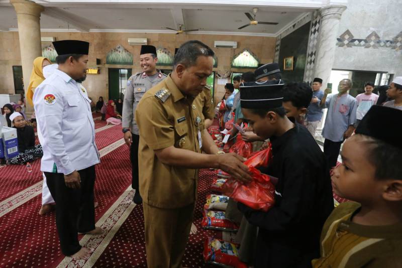 Dalam upaya mempererat silaturahmi dan memperkuat kepedulian sosial, Penjabat (Pj) Wali Kota Tangerang, Dr. Nurdin, memberikan santunan dan makan bersama 200 anak yatim piatu di Masjid Jami Al Ikhlas, Kelurahan Jurumudi, Kecamatan Benda, Kota Tangerang, Senin (10/2/2025).